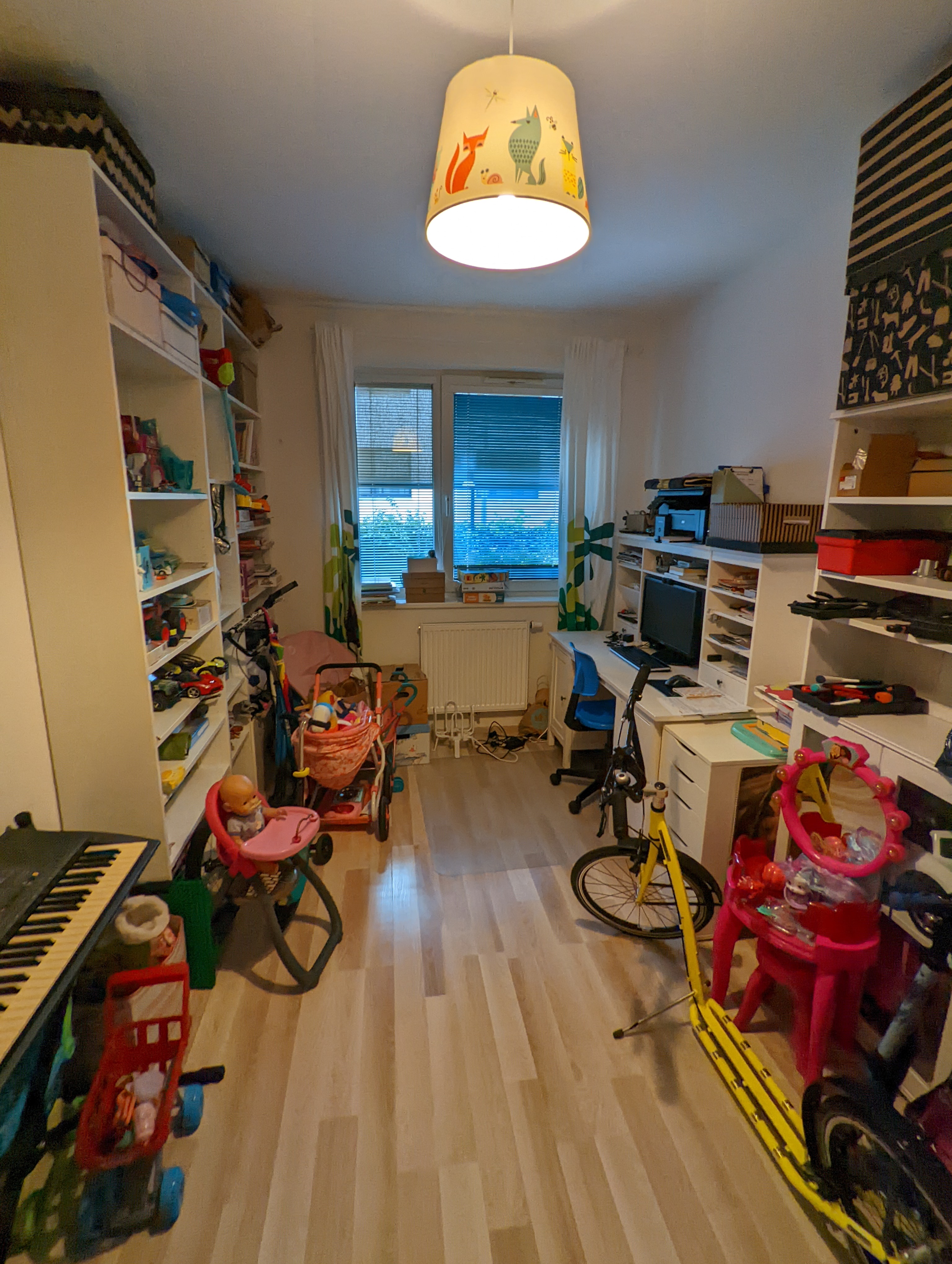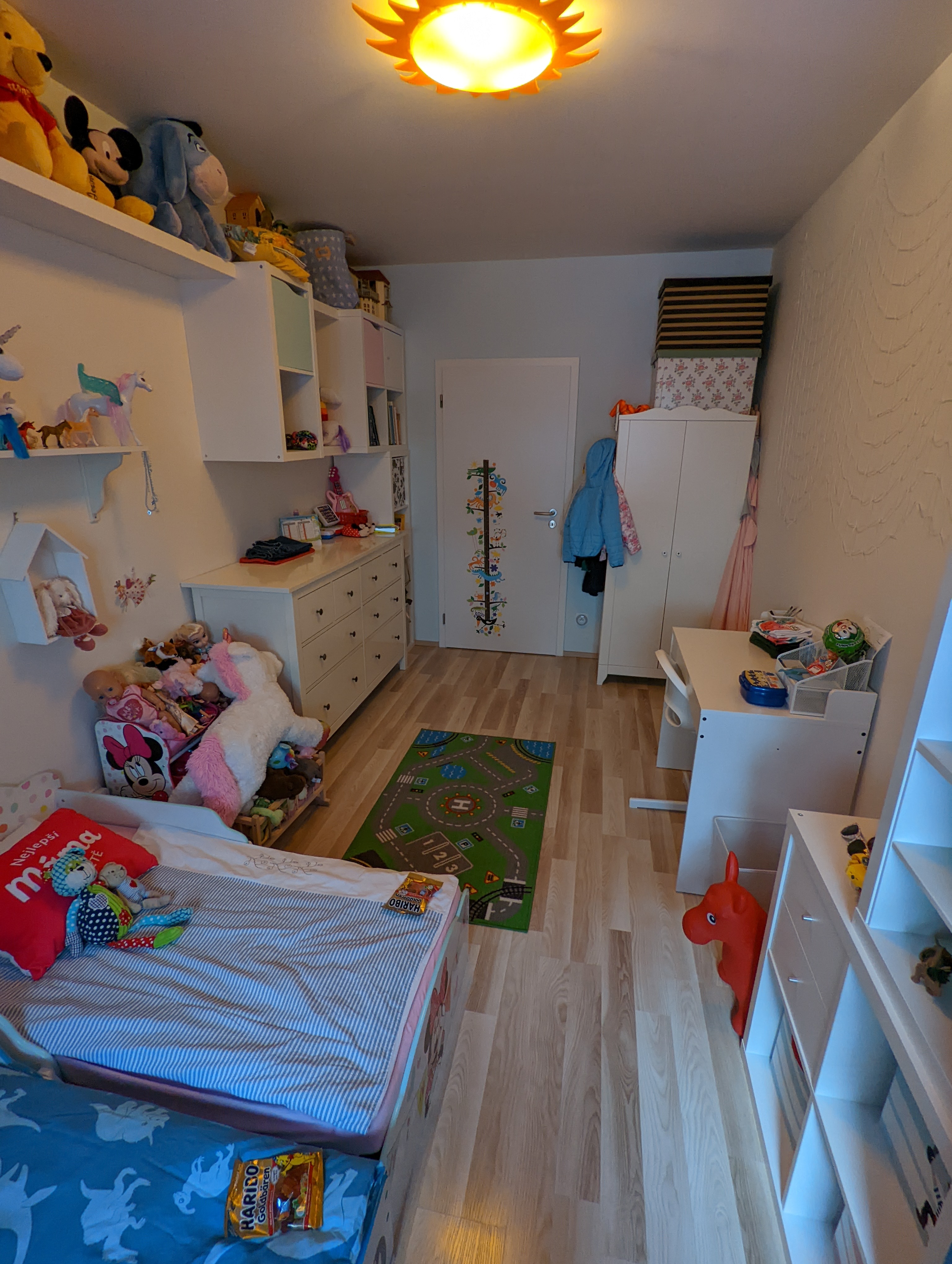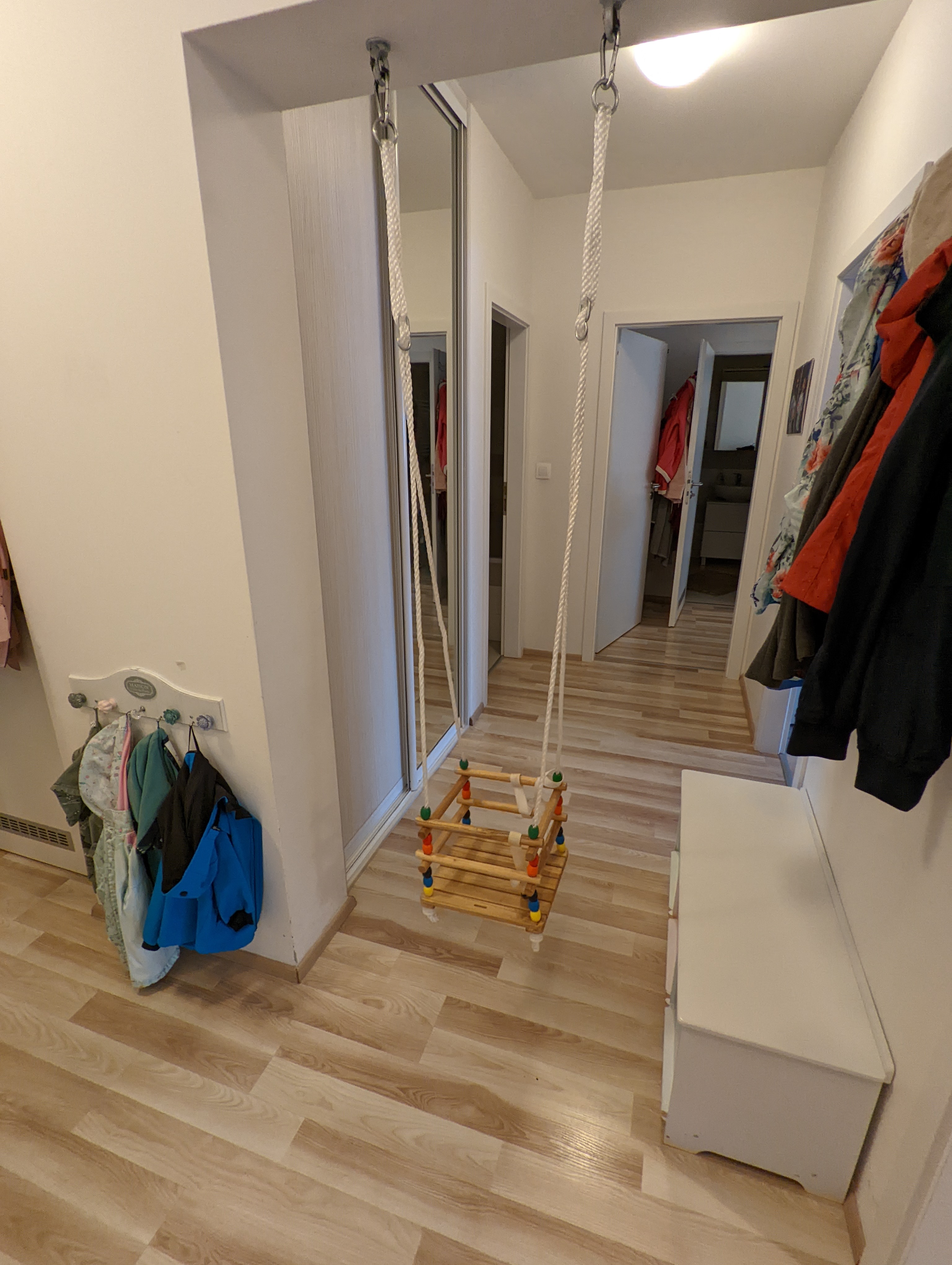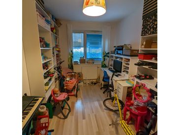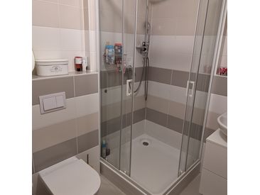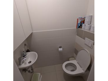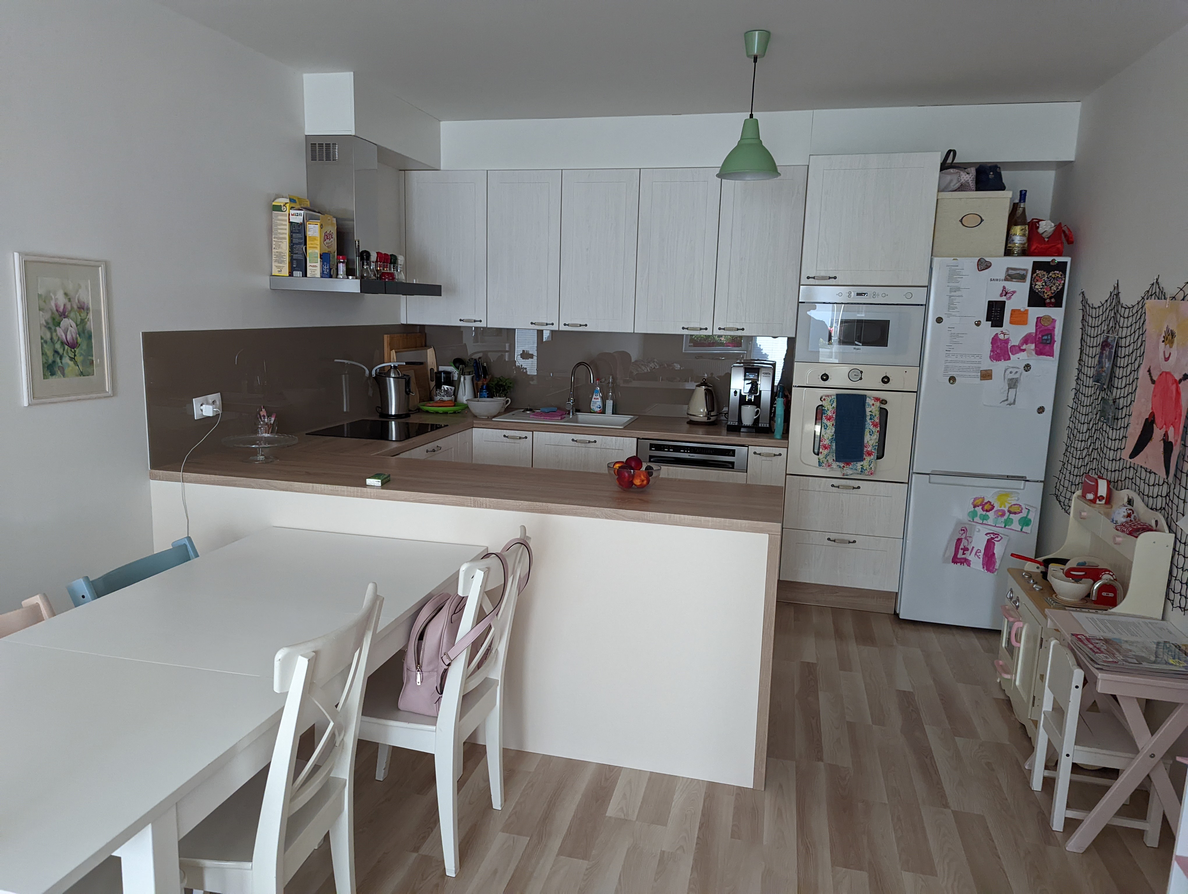 The flat is located in Jahodnice, a quiet part of Prague 14 - Hostavice. This location is well connected to the city centre by trains with the train station situated just 10 minutes of walking distance away. You will find here everything you need for living - just on the same street we have kindergarten, Albert, cafe, wineshop, etc. and you can find kids playgrounds and a lot of green areas in the close vicinity.